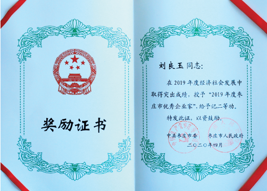 近日,棗莊市召開全市經(jīng)濟社會發(fā)展總結(jié)表彰暨“重點工作攻堅年”動員大會,集團公司黨委書記、董事長劉良玉等10位企業(yè)家榮膺“2019年度棗莊市優(yōu) 秀企業(yè)家”稱號,并給予記二等功。