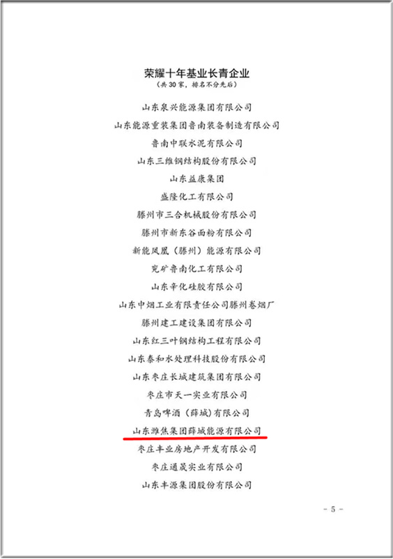 薛城能源公司榮獲“榮耀十年基業(yè)長(zhǎng)青企業(yè)”稱號(hào)