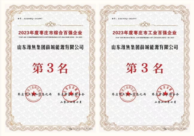 【喜訊】薛城能源公司、棗莊杰富意公司雙獲2023年度棗莊市“綜合百強(qiáng)企業(yè)”和“工業(yè)百強(qiáng)企業(yè)”稱號