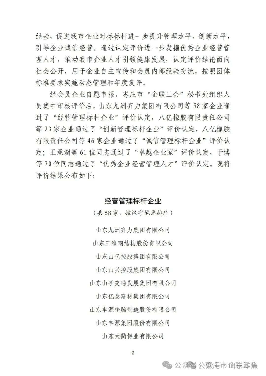 近日,棗莊市企業(yè)聯(lián)合會、棗莊市企業(yè)家協(xié)會、棗莊市工業(yè)聯(lián)合會發(fā)布《關(guān)于2024年管理標(biāo)桿企業(yè)及其優(yōu) 秀管理者認(rèn)定評價結(jié)果的通知》,山東濰焦集團薛城能源有限公司、棗莊杰富意振興化工有限公司榮獲2024年度“經(jīng)營管理標(biāo)桿企業(yè)”稱號。這是對兩公司經(jīng)營管理水平、管理創(chuàng)新能力等方面的充分肯定和認(rèn)可。